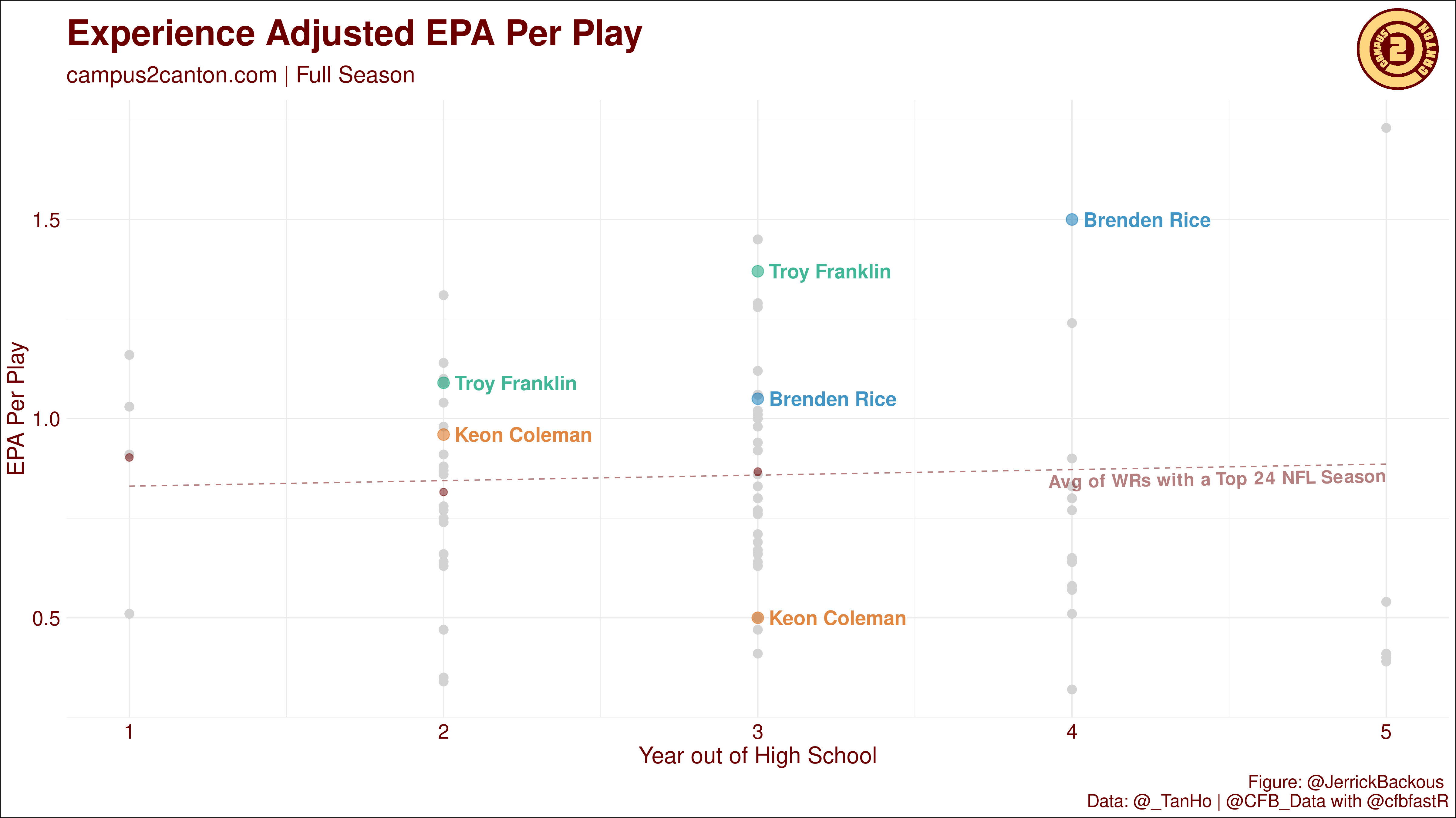 Rice will be a sleeper receiver in your rookie drafts, most likely in the 3rd-round.